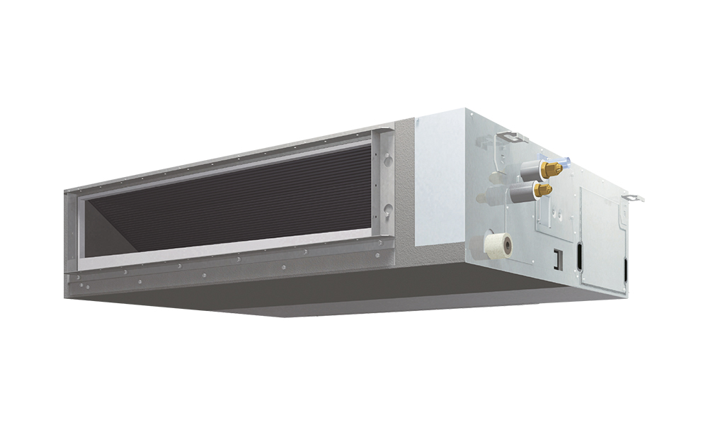 เครื่องปรับอากาศแบบต่อท่อลมแรงดันปานกลาง (Middle Static Duct Type) ประหยัดไฟเบอร์ 5 ซ่อนคอยล์เย็นไว้ในฝ้าส่งลมเย็นผ่านท่อลม ปรับเปลี่ยนแรงดันสถิตย์ได้ตั้งแต่ 50-150 Pa ทำให้ส่งลมได้ไกลทั่วถึง ประหยัดพลังงานด้วยระบบอินเวอร์เตอร์แบบสวิงที่ให้ความเย็นเร็วและคงที่ ใช้สารทำความเย็น R32 ให้ประสิทธิภาพการทำความเย็นสูงและไม่ทำลายโอโซน ออกแบบพิเศษเพื่อใช้งานในพื้นที่จำกัดด้วยขนาดบางเพียง 24.5 ซม. ทุกรุ่น ทำงานเงียบเพียง 31 เดซิเบล มีถาดรองน้ำทิ้งเคลือบสารยับยั้งแบคทีเรียล้างทำความสะอาดได้ง่าย