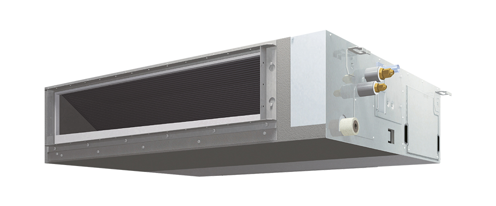 เครื่องปรับอากาศแบบต่อท่อลมแรงดันปานกลาง (Middle Static Duct Type) ประหยัดไฟเบอร์ 5 ซ่อนคอยล์เย็นไว้ในฝ้าส่งลมเย็นผ่านท่อลม ปรับเปลี่ยนแรงดันสถิตย์ได้ตั้งแต่ 50-150 Pa ทำให้ส่งลมได้ไกลทั่วถึง ประหยัดพลังงานด้วยระบบอินเวอร์เตอร์แบบสวิงที่ให้ความเย็นเร็วและคงที่ ใช้สารทำความเย็น R32 ให้ประสิทธิภาพการทำความเย็นสูงและไม่ทำลายโอโซน ออกแบบพิเศษเพื่อใช้งานในพื้นที่จำกัดด้วยขนาดบางเพียง 24.5 ซม. ทุกรุ่น ทำงานเงียบเพียง 30 เดซิเบล มีถาดรองน้ำทิ้งเคลือบสารยับยั้งแบคทีเรียล้างทำความสะอาดได้ง่าย